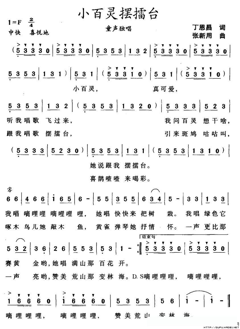 小百灵摆擂台的简谱歌词