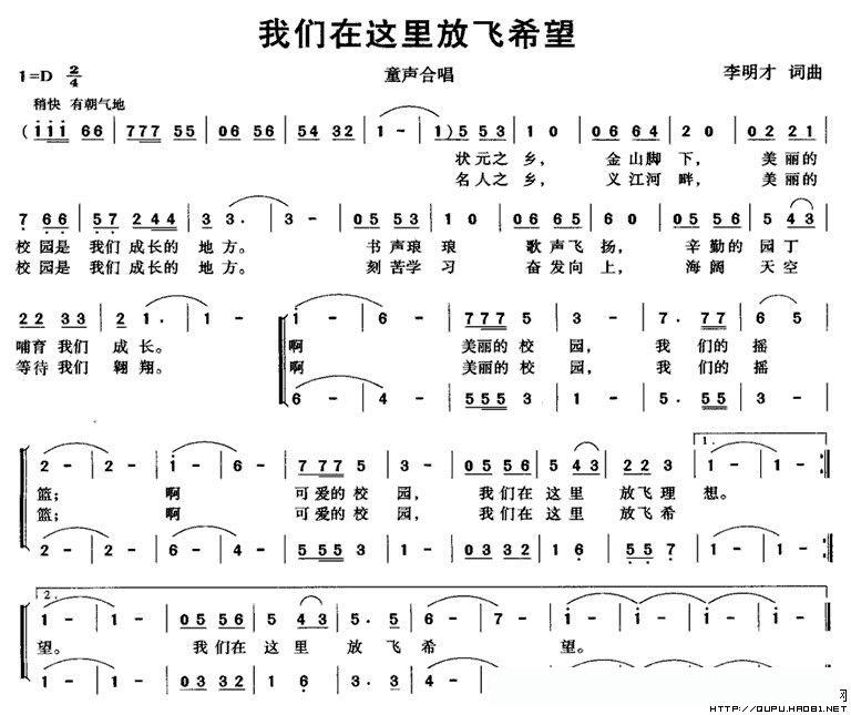 我们在这里放飞希望(合唱)的简谱歌词