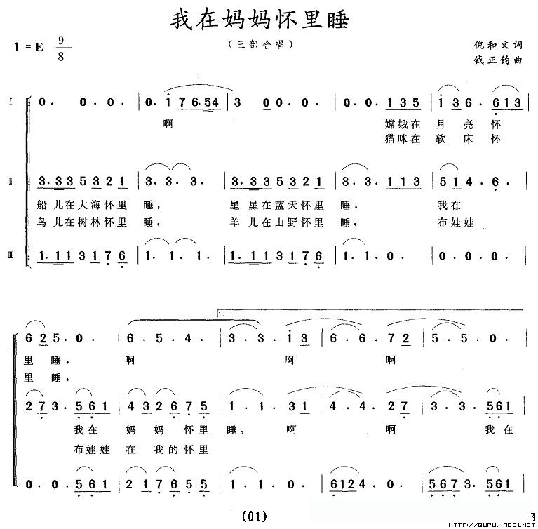 我在妈妈怀里睡(三部合唱)的简谱歌词我在妈妈怀里睡(三部合唱)的简谱歌词