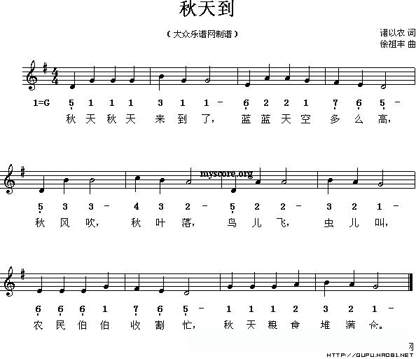 秋天到(线、的简谱混排版)的简谱歌词