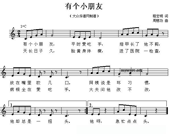 有个小朋友(五线谱)的简谱歌词