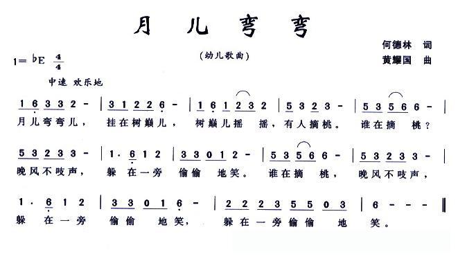 月儿弯弯(何德林词 黄耀国曲)的简谱歌词