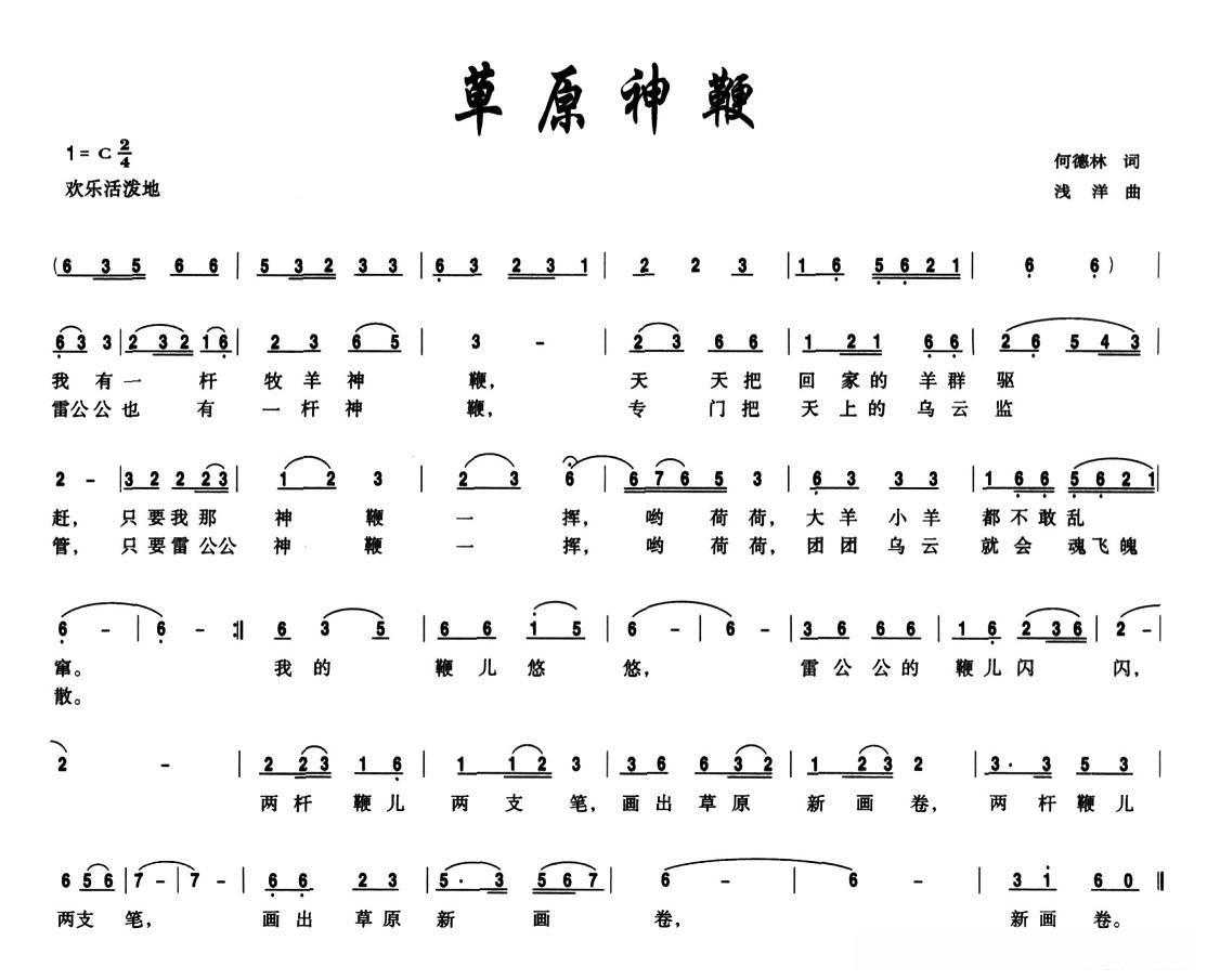 草原神鞭(何德林词 浅洋曲)的简谱歌词草原神鞭(何德林词 浅洋曲)的简谱歌词