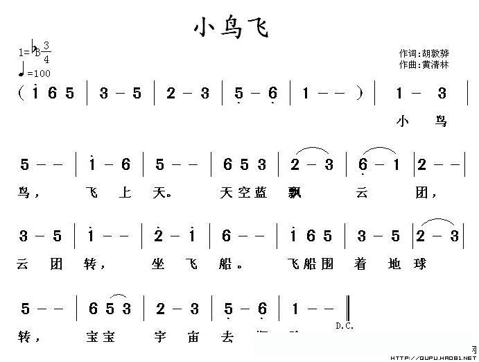 小鸟飞(胡敦骅词 黄清林曲)的简谱歌词