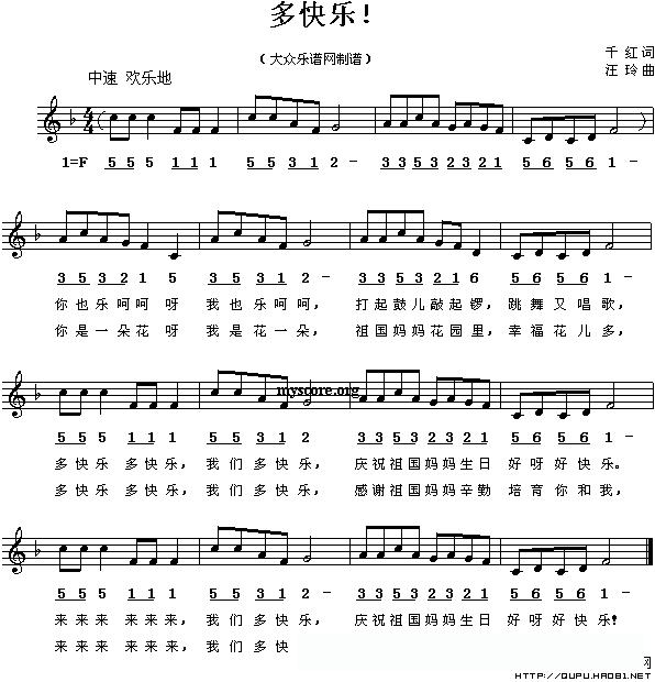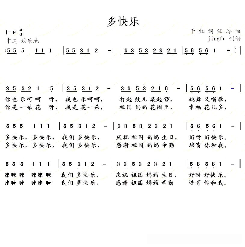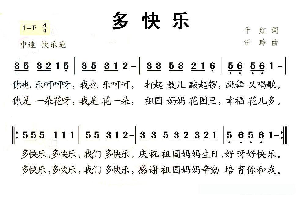 多快乐(千红词 汪玲曲)的简谱歌词多快乐(千红词 汪玲曲)的简谱歌词多快乐(千红词 汪玲曲)的简谱歌词