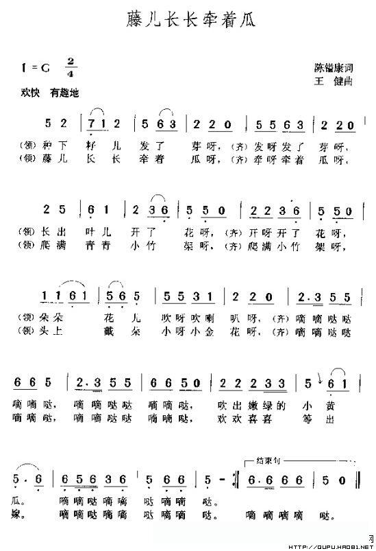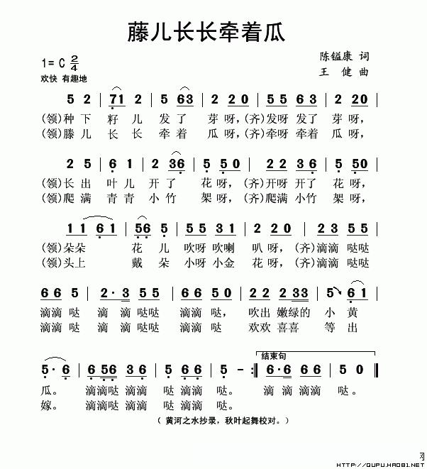 原谱来自《曲谱歌谱大全》藤儿长长牵着瓜的简谱歌词藤儿长长牵着瓜的简谱歌词