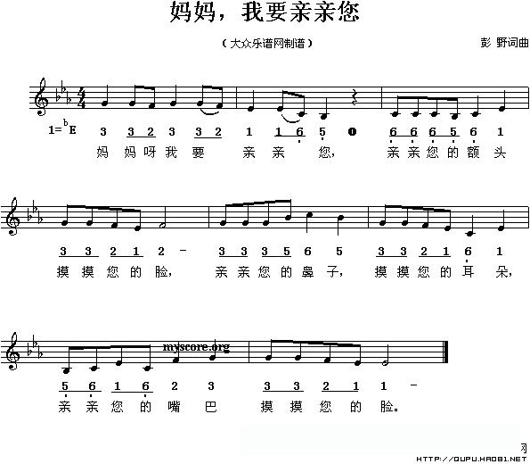 妈妈,我要亲亲您(线、的简谱混排版)的简谱歌词