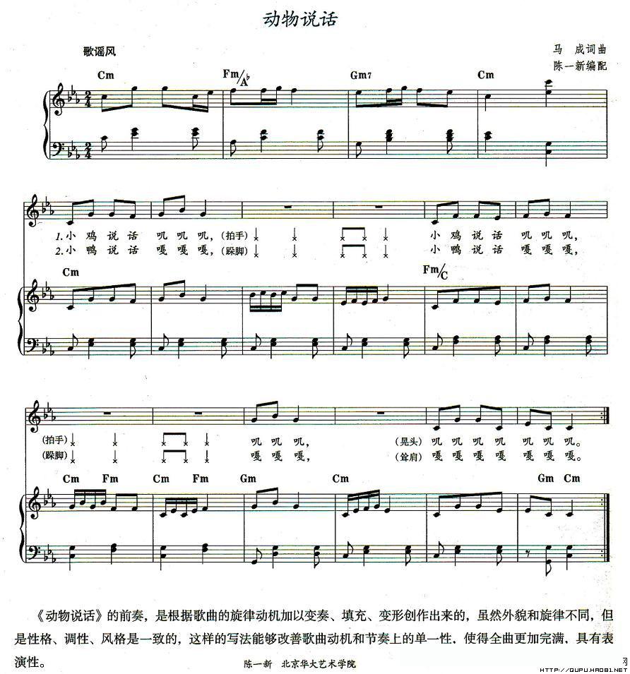 动物说话(教材歌曲即兴配弹)的简谱歌词