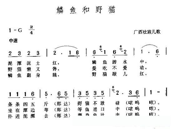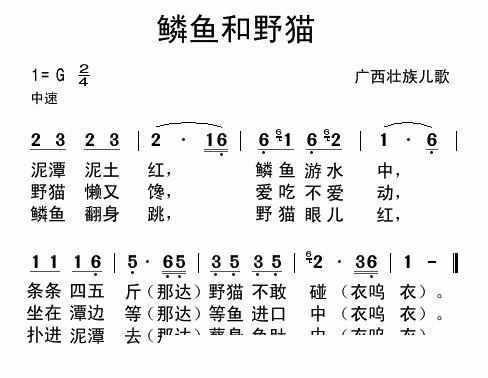 鳞鱼和野猫的简谱歌词鳞鱼和野猫的简谱歌词