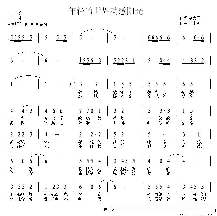 年轻的世界动感阳光的简谱歌词年轻的世界动感阳光的简谱歌词