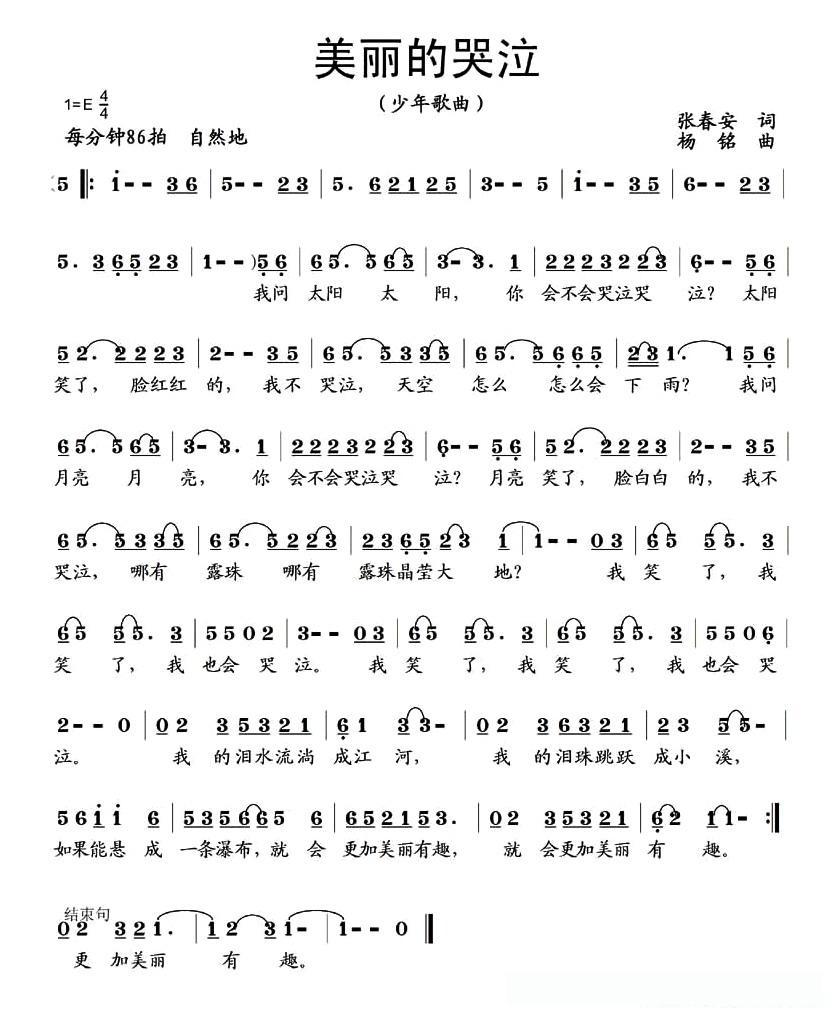 美丽的哭泣(张春安词 杨铭曲)的简谱歌词