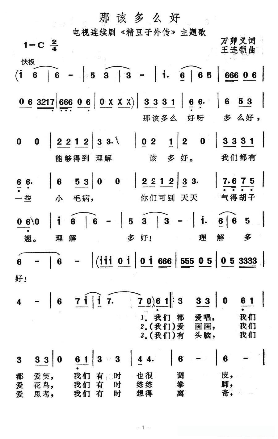 那该多么好(电视连续剧《精豆子外传》主题歌)的简谱歌词那该多么好(电视连续剧《精豆子外传》主题歌)的简谱歌词