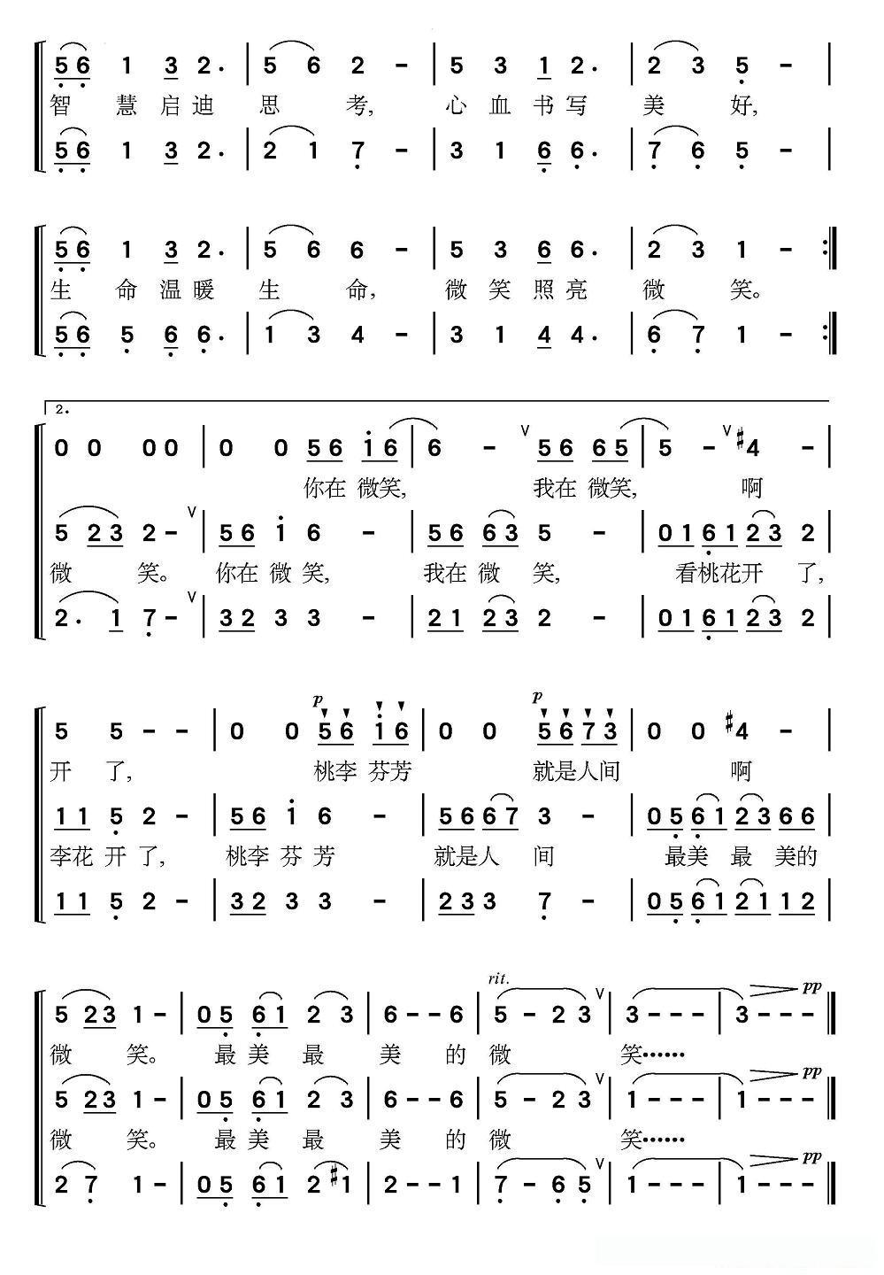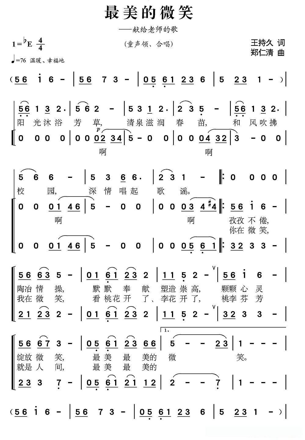 最美的微笑—献给老师的歌(童声领唱、合唱 )的简谱歌词最美的微笑—献给老师的歌(童声领唱、合唱 )的简谱歌词