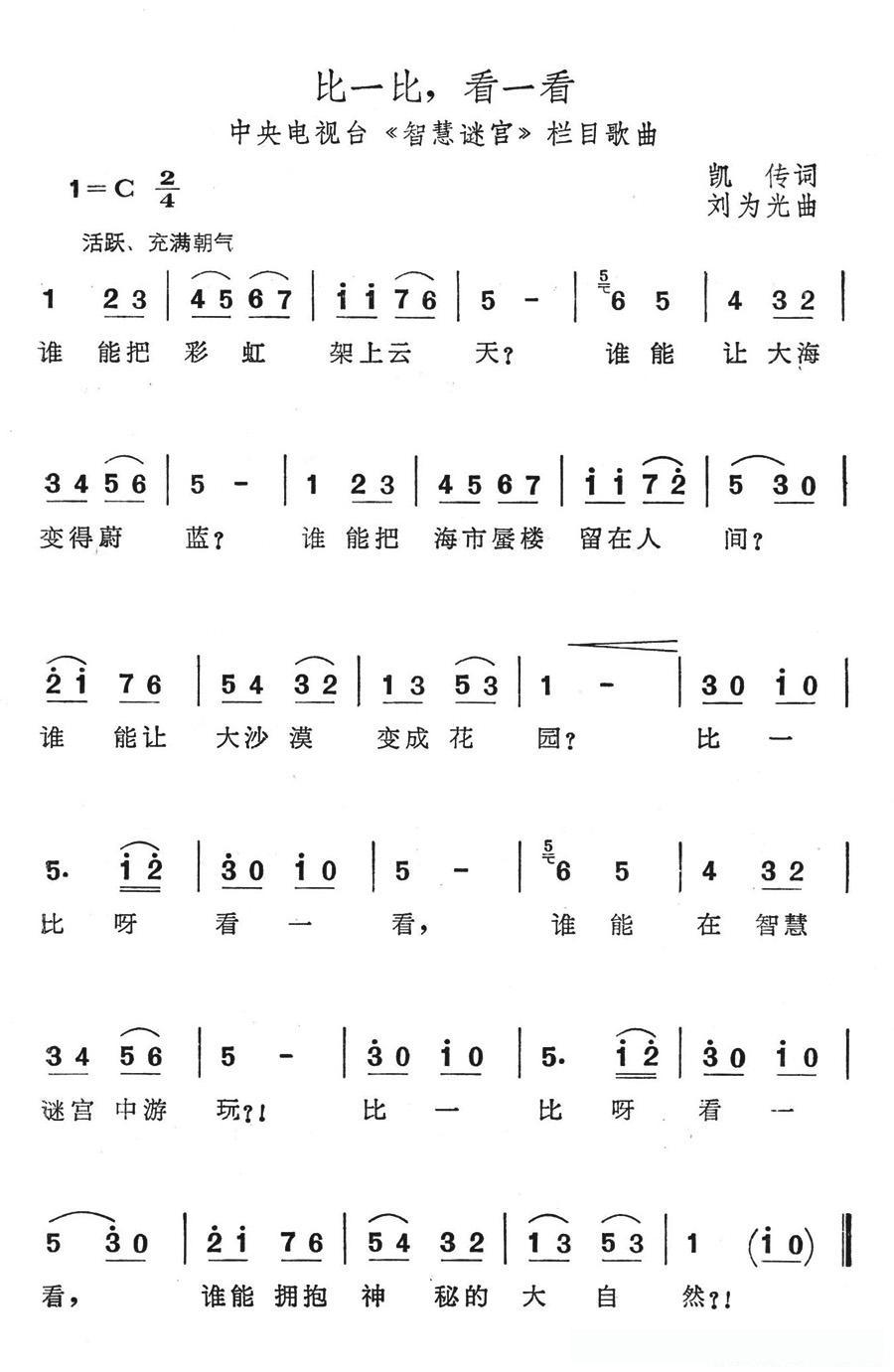 比一比,看一看(中央电视台《智慧迷宫》栏目歌曲)的简谱歌词