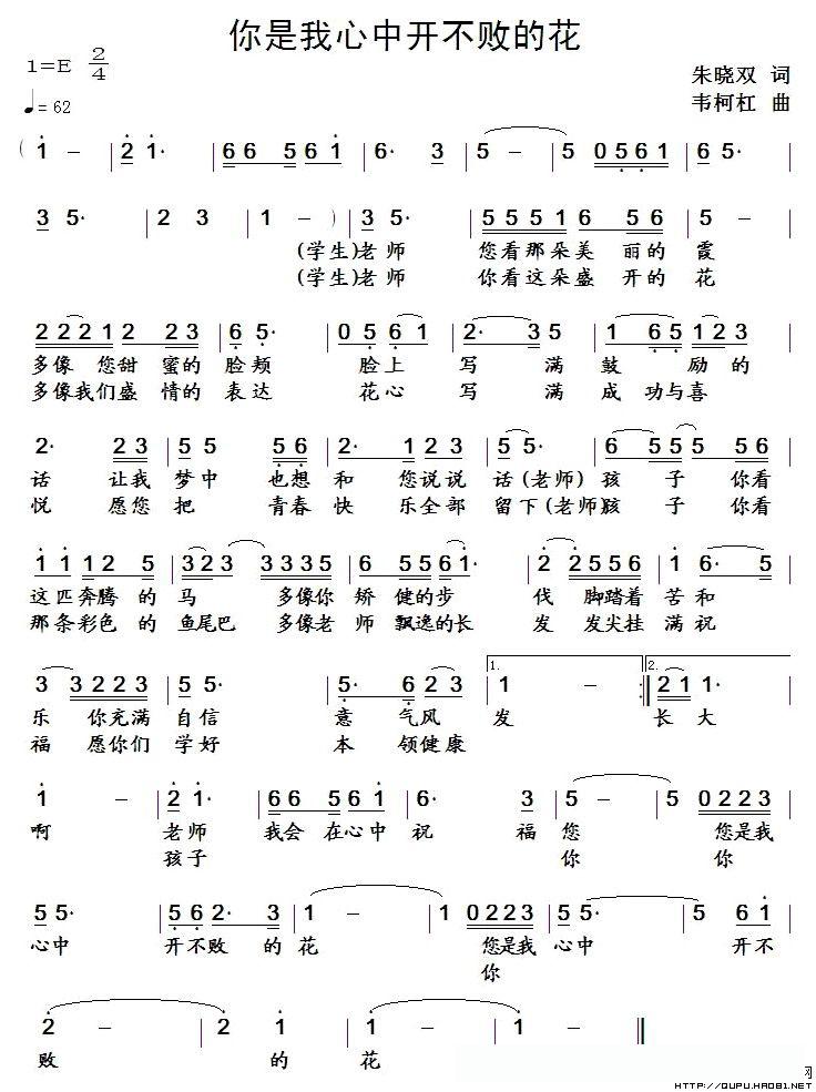 你是我心中开不败的花的简谱歌词