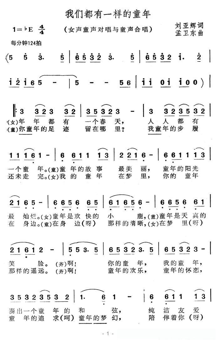 我们都有一样的童年的简谱歌词我们都有一样的童年的简谱歌词