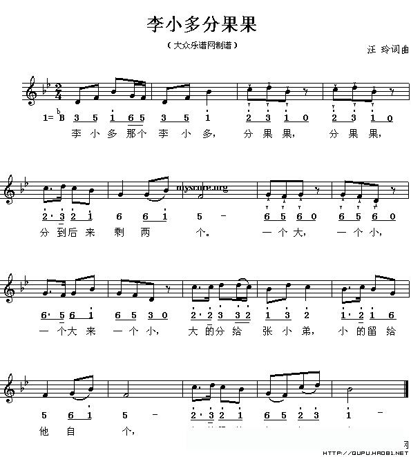 李小多分果果(线的简谱对照版)的简谱歌词