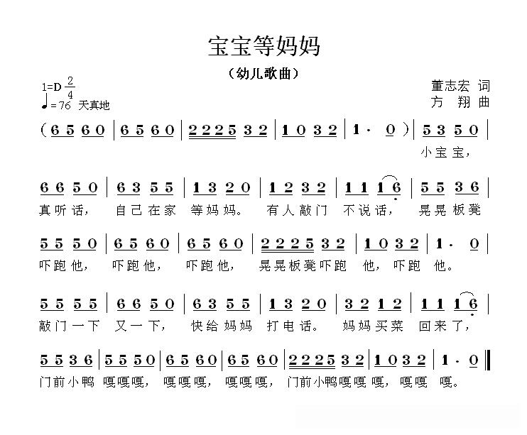 宝宝等妈妈(董志宏词 方翔曲)的简谱歌词