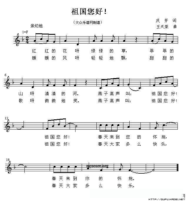 祖国您好(线、的简谱混排版)的简谱歌词