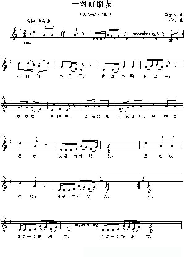一对好朋友(五线谱)的简谱歌词