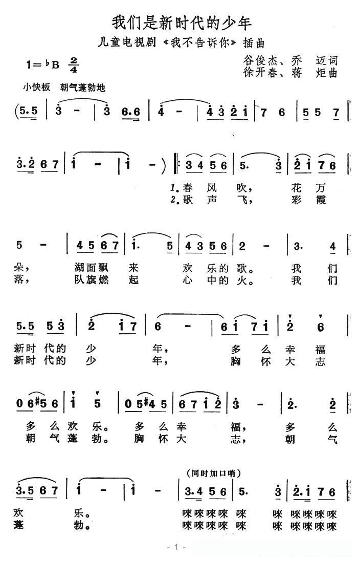 我们是新时代的少年(儿童电视剧《我不告诉你》插曲)的简谱歌词我们是新时代的少年(儿童电视剧《我不告诉你》插曲)的简谱歌词