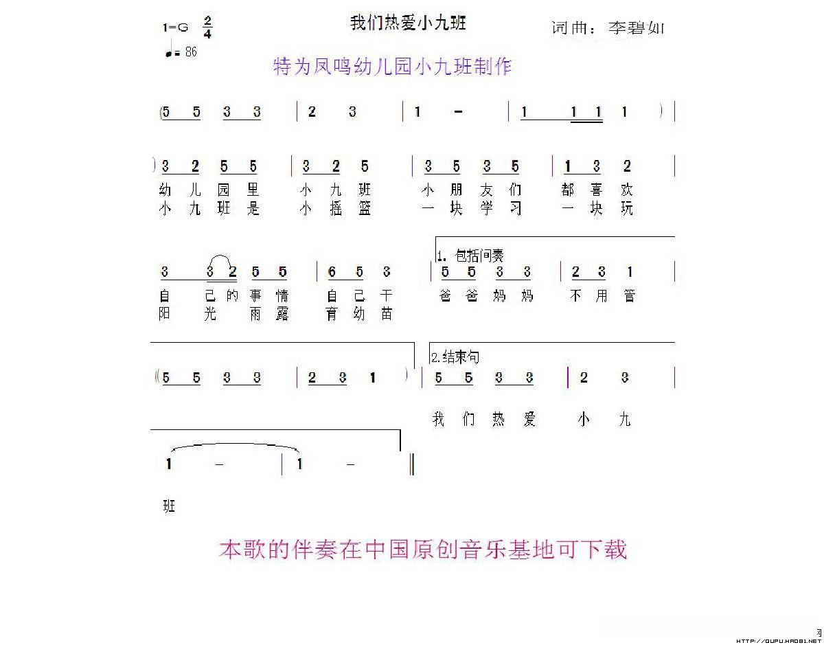 我们热爱小九班的简谱歌词