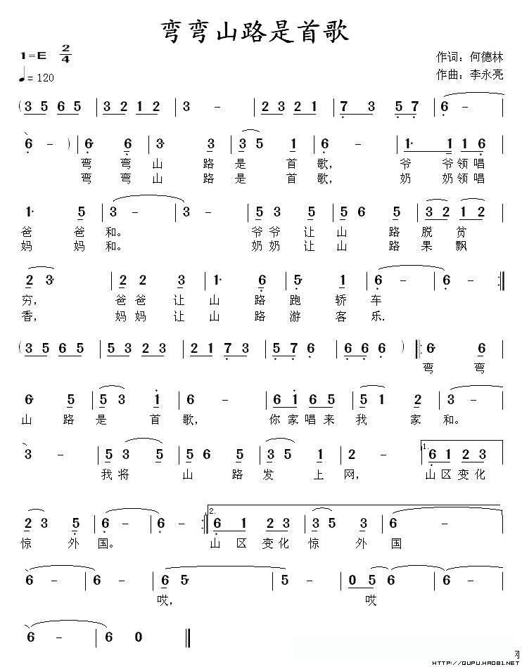 弯弯山路是首歌(何德林词 李永亮曲)的简谱歌词