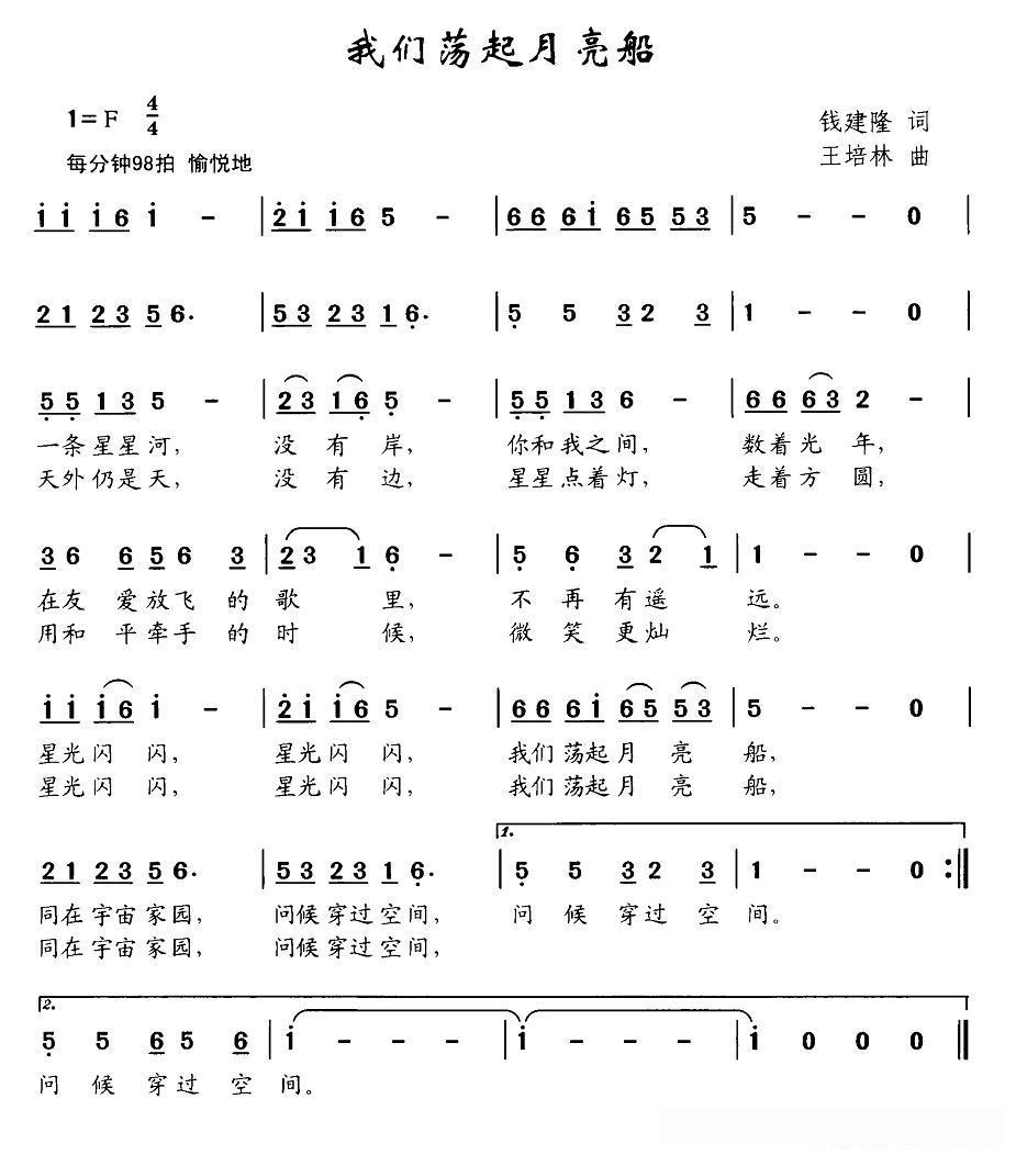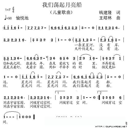 我们荡起月亮船(钱建隆词 王培林曲)的简谱歌词我们荡起月亮船(钱建隆词 王培林曲)的简谱歌词