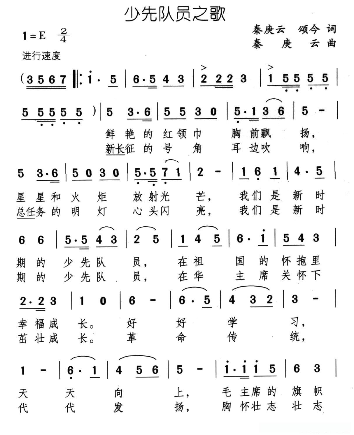 少先队员之歌(秦庚云 颂今词 秦庚云曲)的简谱歌词少先队员之歌(秦庚云 颂今词 秦庚云曲)的简谱歌词