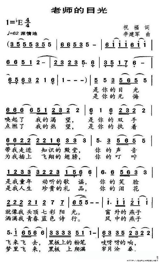 老师的目光(祝福词 李建军曲)的简谱歌词老师的目光(祝福词 李建军曲)的简谱歌词