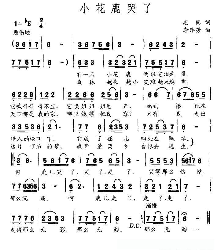 小花鹿哭了(志同词 李萍芳曲)的简谱歌词