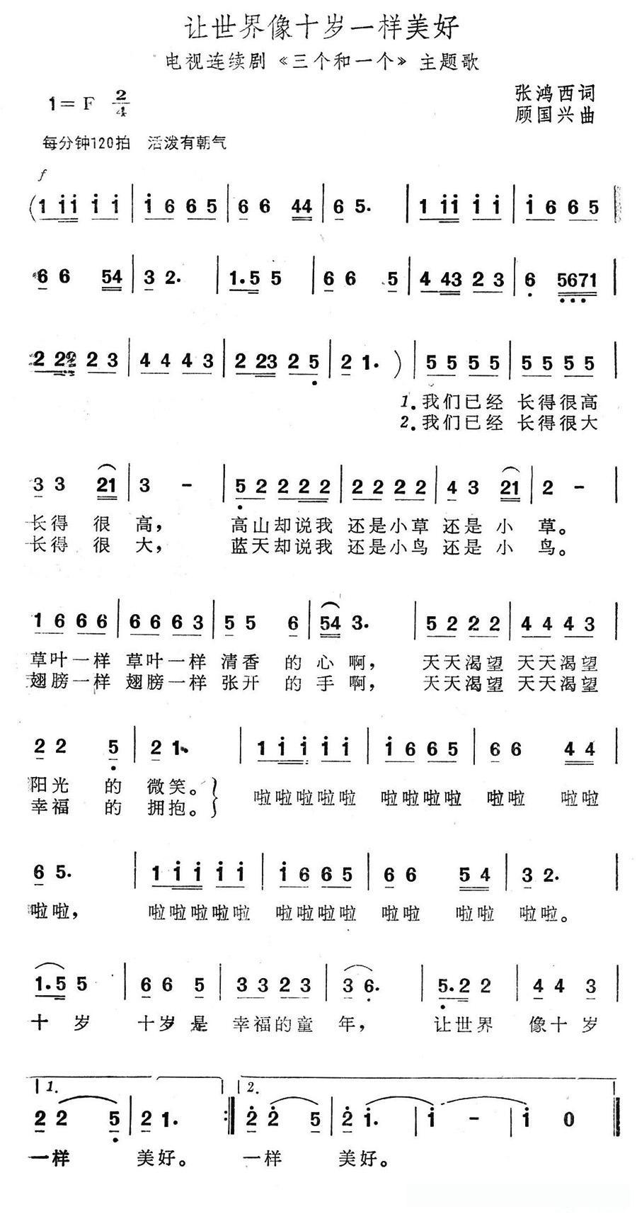 让世界像十岁一样美好(电视连续剧《三个和一个》主题歌)的简谱歌词