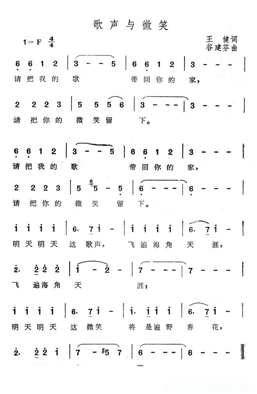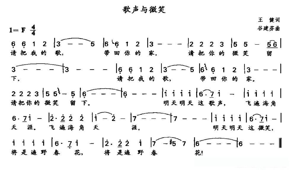 歌声与微笑的简谱歌词歌声与微笑的简谱歌词