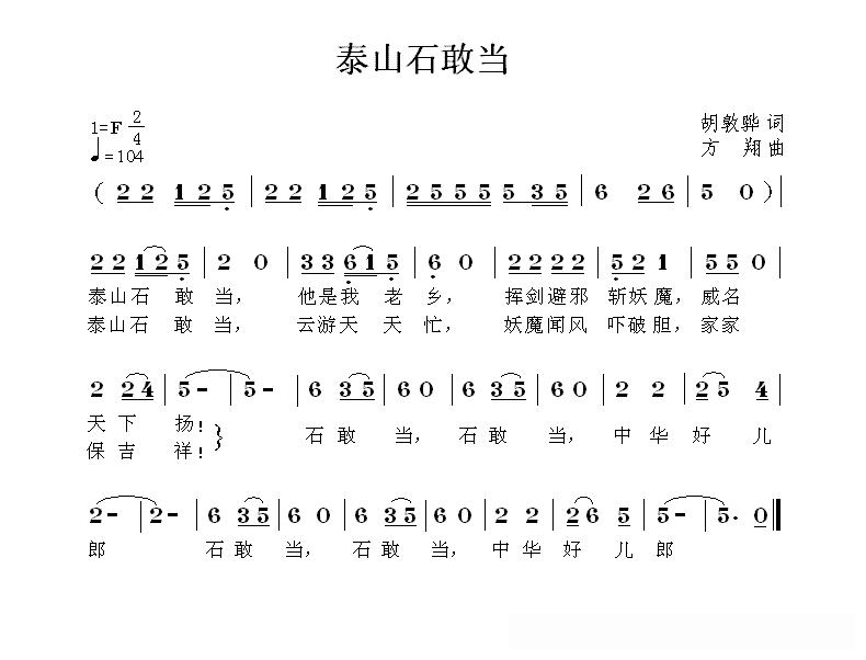 泰山石敢当(胡敦骅词 方翔曲)的简谱歌词