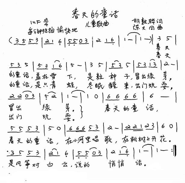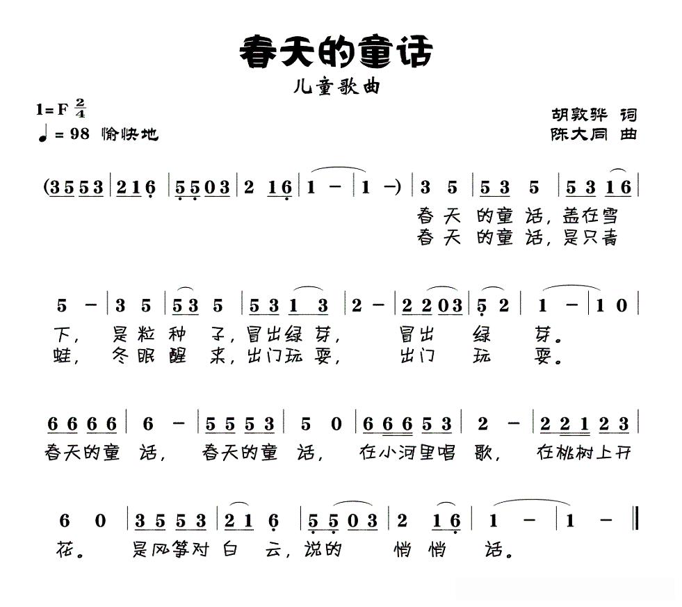 春天的童话(胡敦骅词 陈大同曲)的简谱歌词春天的童话(胡敦骅词 陈大同曲)的简谱歌词