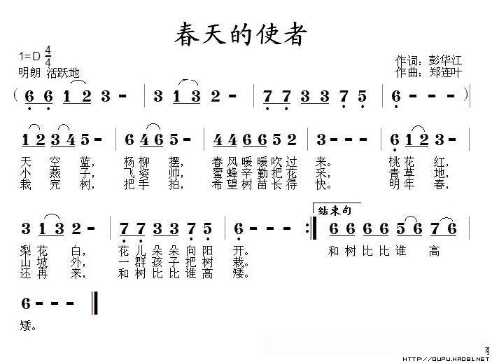 春天的使者(彭华江词 郑连叶曲)的简谱歌词