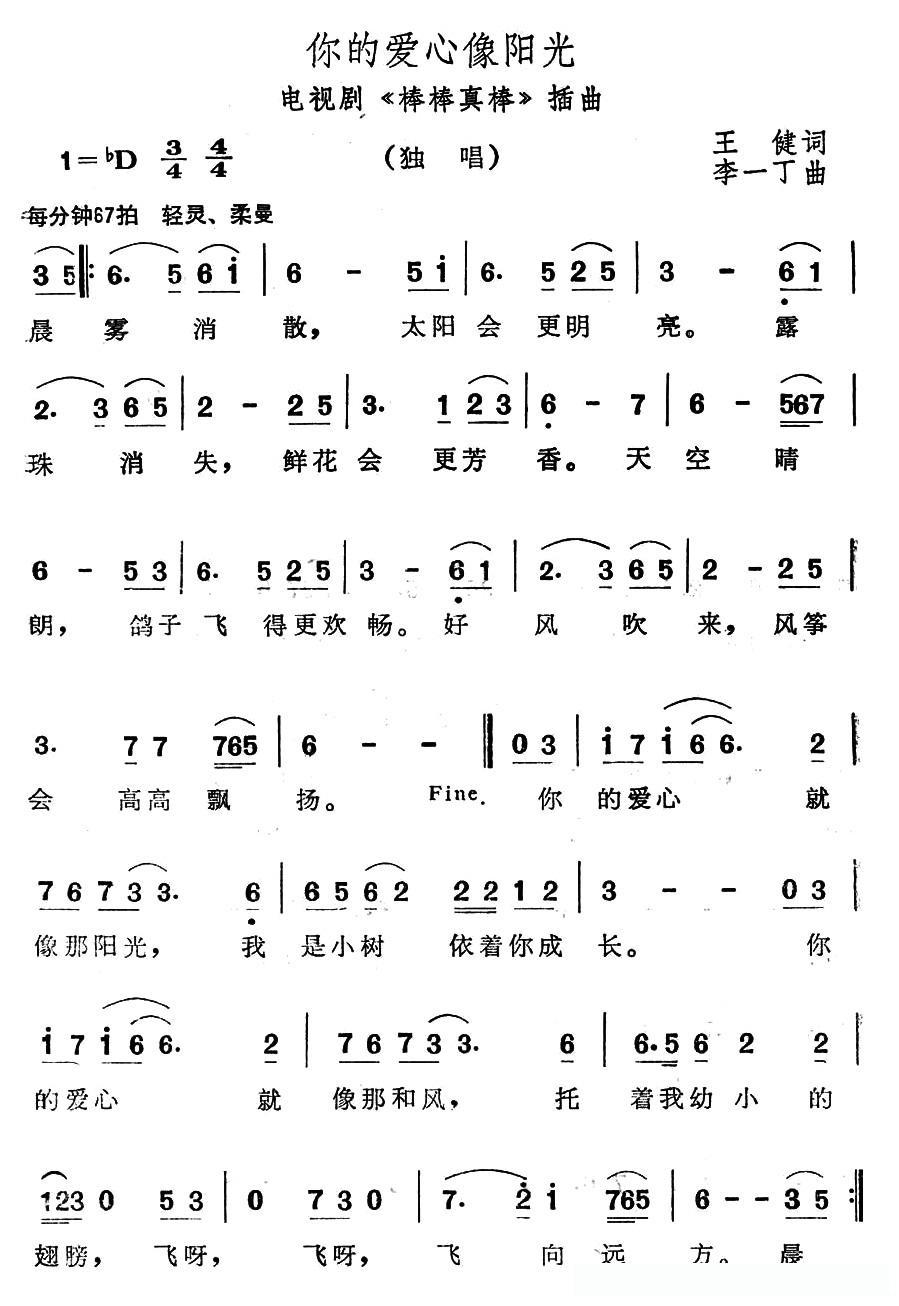 你的爱心像阳光(电视剧《棒棒真棒》插曲)的简谱歌词
