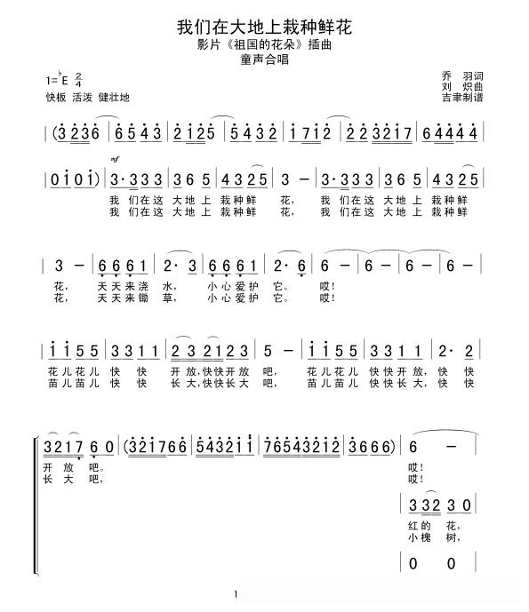我们在大地上栽种鲜花(合唱)的简谱歌词