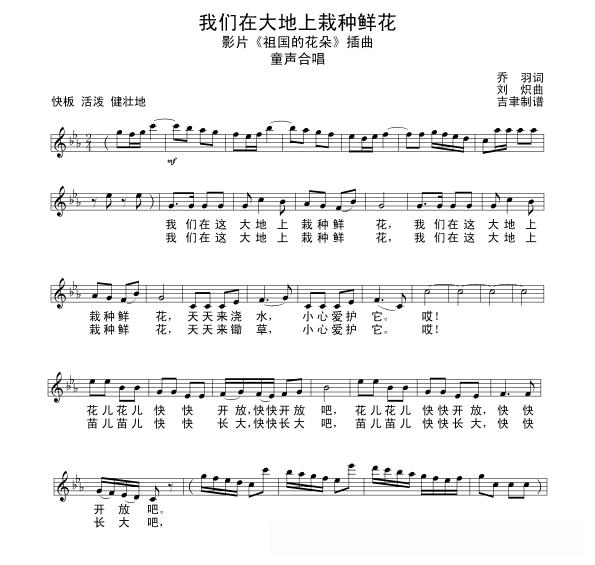 我们在大地上栽种鲜花(合唱)的简谱歌词我们在大地上栽种鲜花(合唱)的简谱歌词我们在大地上栽种鲜花(合唱)的简谱歌词我们在大地上栽种鲜花(合唱)的简谱歌词