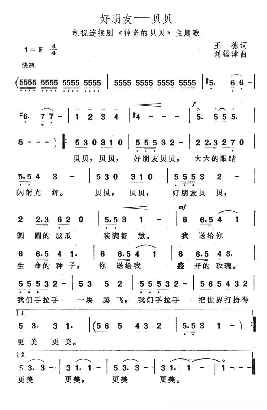 好朋友—贝贝(电视连续剧《神奇的贝贝》主题歌)的简谱歌词