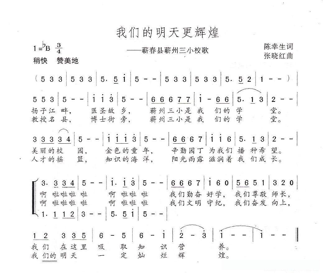 我们的明天更辉煌(——湖北蕲州三小校歌)的简谱歌词