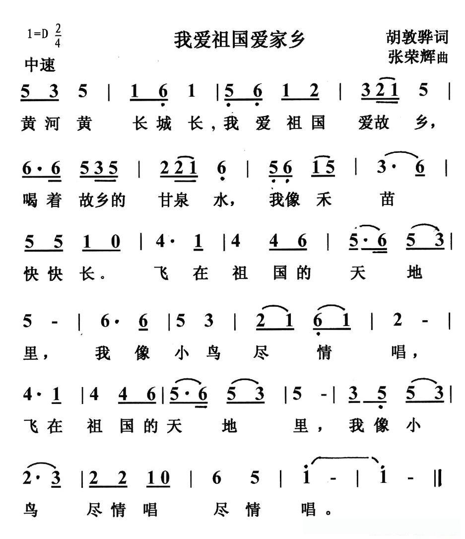 我爱祖国爱家乡的简谱歌词