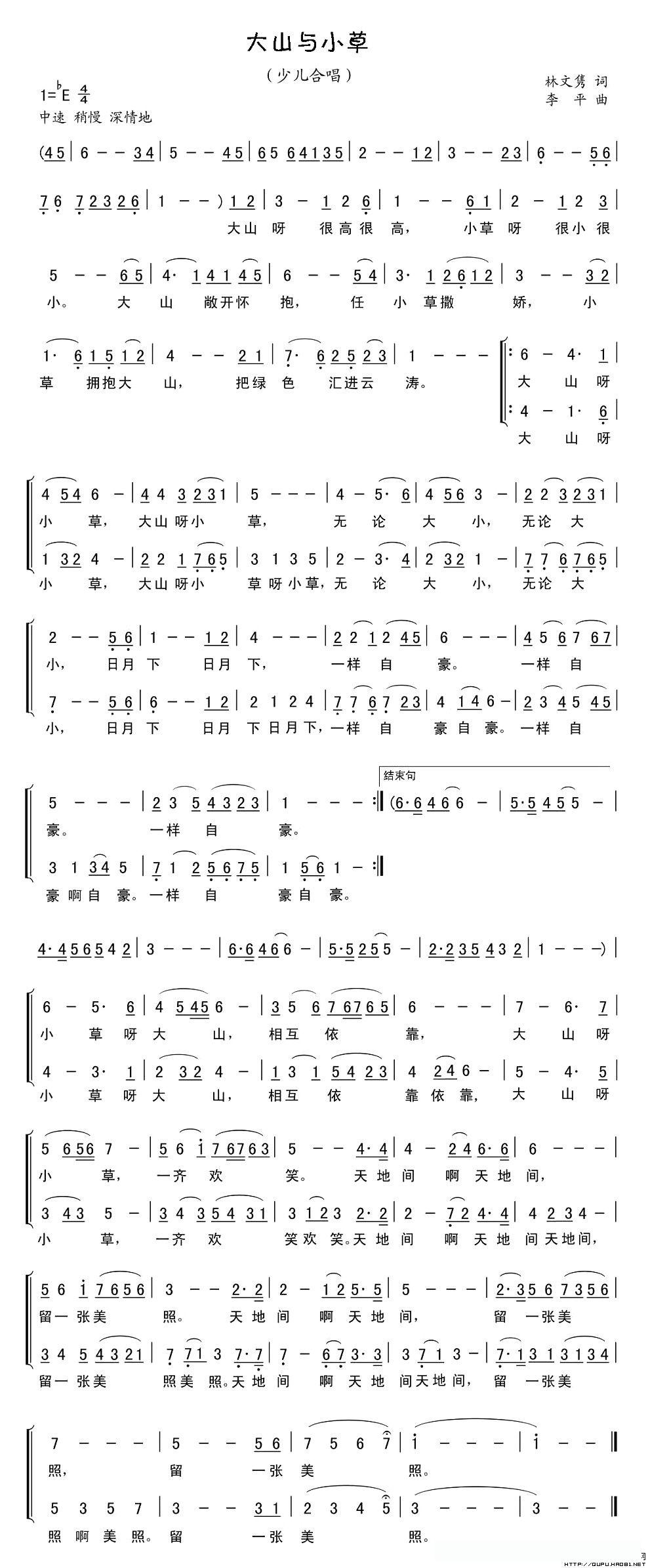 大山与小草(合唱)的简谱歌词