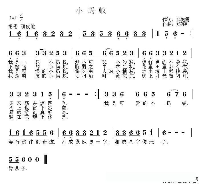 小蚂蚁(郭振霞词 郑连叶曲)的简谱歌词