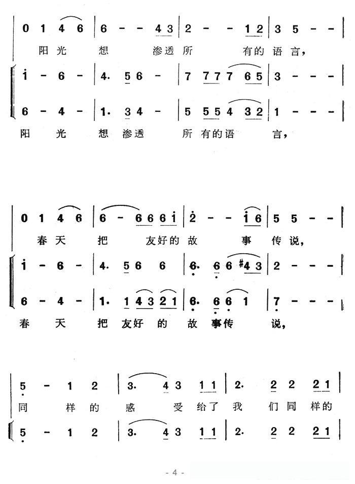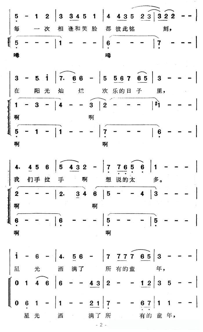 同一首歌(童声合唱)的简谱歌词