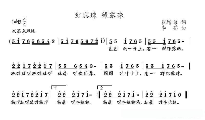 红露珠 绿露珠的简谱歌词