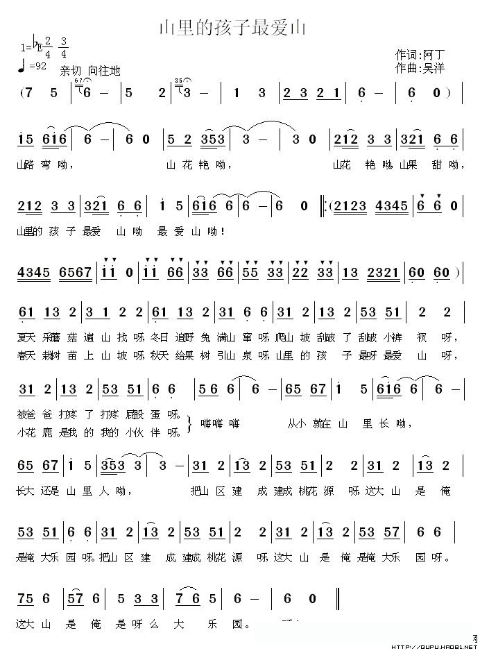 山里的孩子最爱山(阿丁词 吴洋曲)的简谱歌词