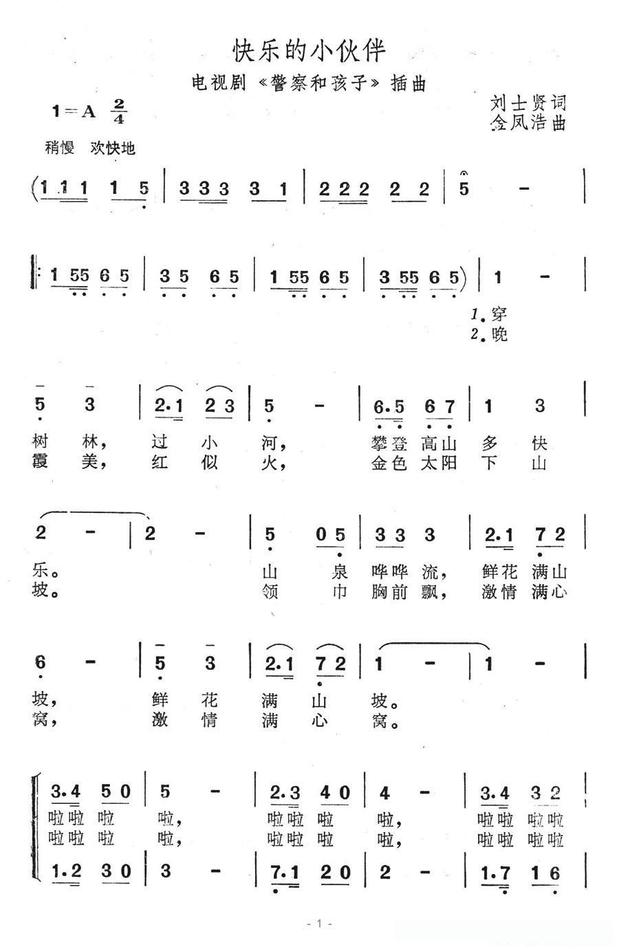 快乐的小伙伴(电视剧《警察和孩子》插曲)的简谱歌词快乐的小伙伴(电视剧《警察和孩子》插曲)的简谱歌词