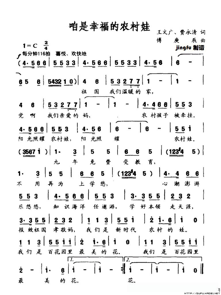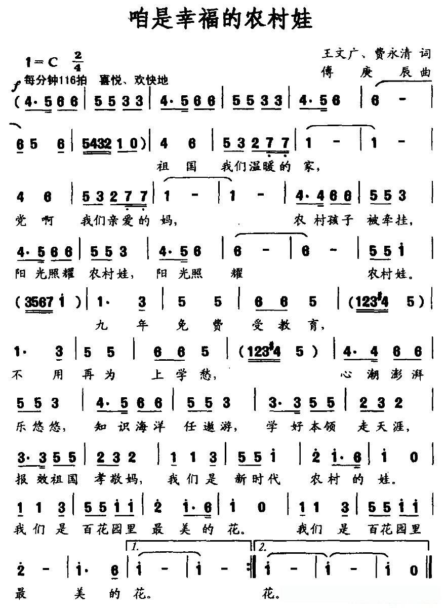咱是幸福的农村娃的简谱歌词咱是幸福的农村娃的简谱歌词