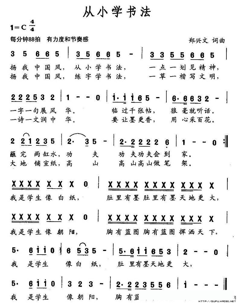 从小学书法(C调版)的简谱歌词